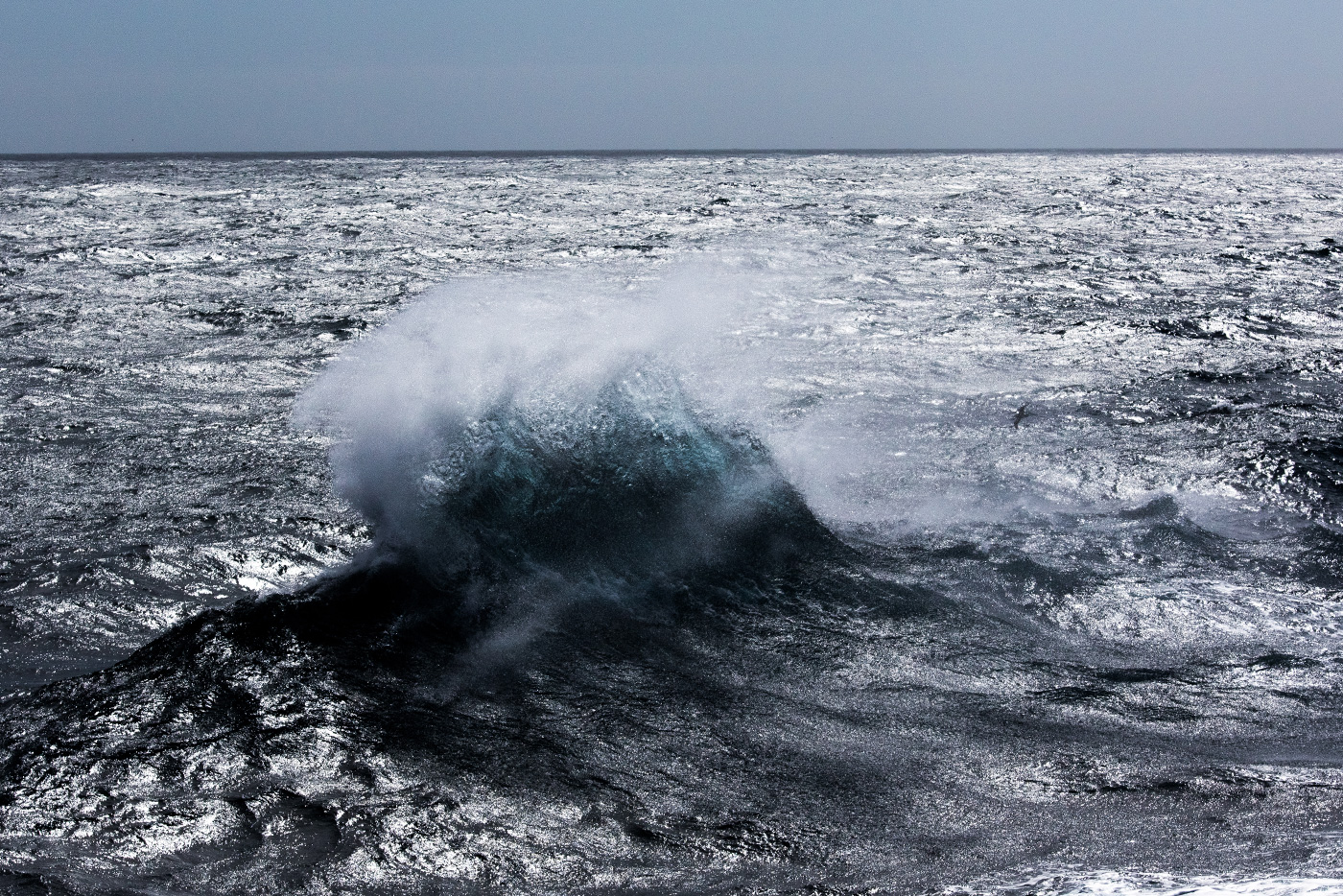 The vessel keeps on traveling north as fast as the big swell and strong winds allow.